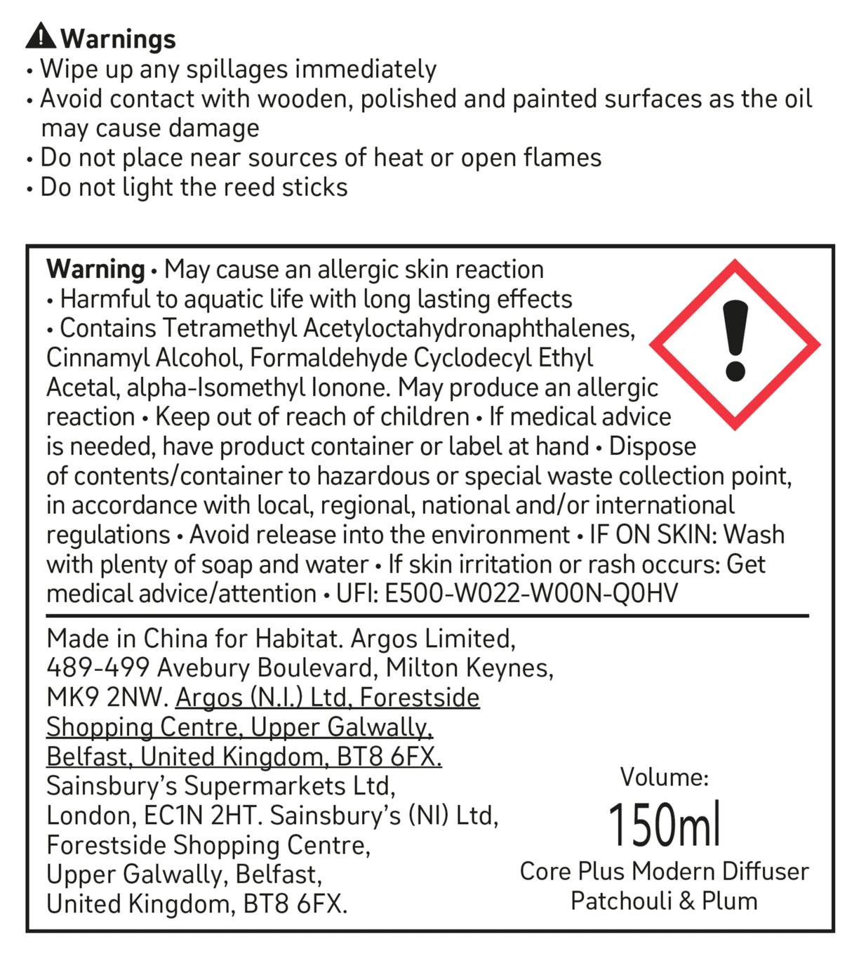 Habitat 150ml Scented Diffuser – Patchouli & Plum